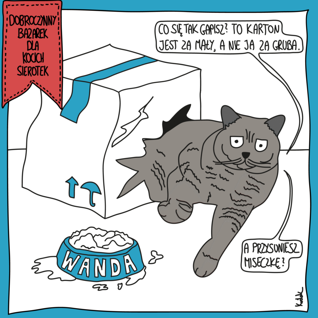 Podsumowując – mój graficzny udział w Dobroczynnym Bazarku dla Kocich Sierotek przyniósł łącznie 281 złotych wsparcia dla kotełów. Jeżeli jesteście zainteresowani kolejnymi edycjami i szansą wylicytowania projektu ze swoim kotełem to śledźcie mojego Facebooka i Instagrama bo niebawem zapewne pojawi się kolejna odsłona Bazarku, na której też oczywiście będę:)