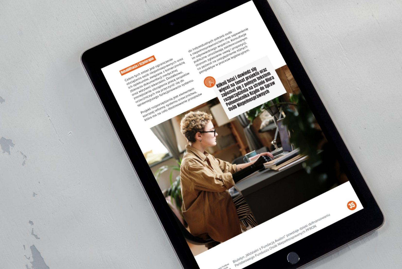 Oto i on, biuletyn Fundacji zajmującej się bezpośrednią pomocą dla osób z niepełnosprawnościami. Jeszcze niedawno tylko jako pomysł, a po dość intensywnym i krótkim czasie pracy już gotowy PDF do pobrania.